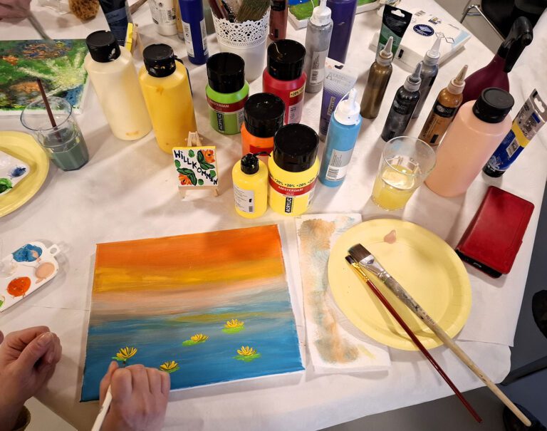 Tauche ein in Farben, Formen und den kreativen Flow – fernab vom Arbeitsalltag. Kein Stress, keine Regeln, ohne Druck, ohne Vorgaben – nur Pinsel, Leinwand und die Freiheit, dich künstlerisch auszudrücken.
